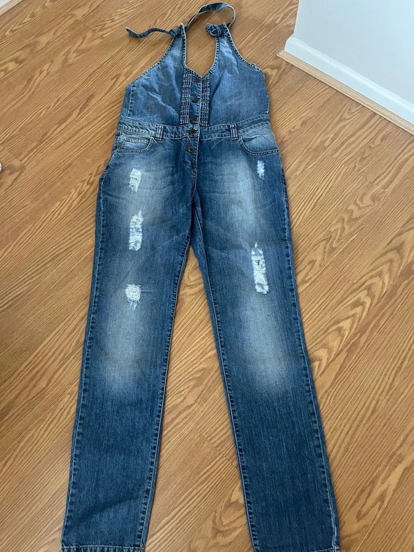 Crafted from denim, these halter neck dungarees from ASOS offer a casual yet stylish look. Featuring a comfortable fit and distressed details, they are perfect for relaxed outings.
