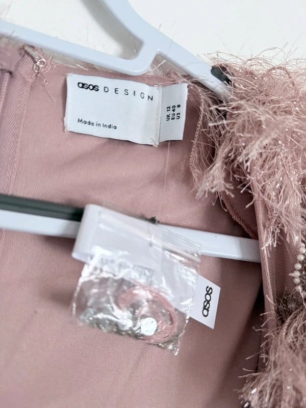 The ASOS Rose Faux Feather Embellished Dress is available in sizes M.