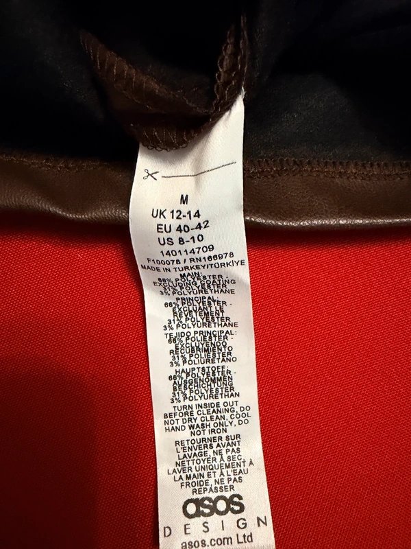 The ASOS Faux Leather Tank Top in Brown is available in sizes M.