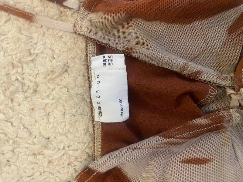 The ASOS Brown & White Adjustable Tie Flared Top is made from polyester, spandex.