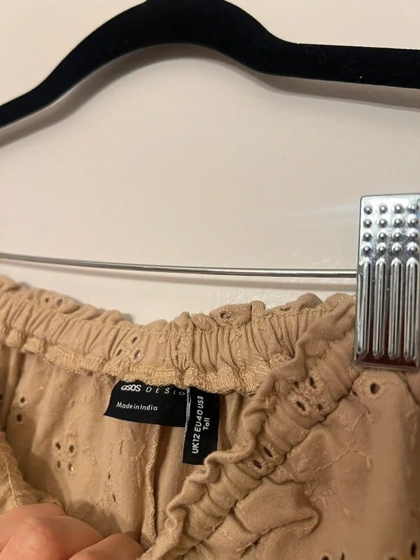 Charming Beige floral eyelet shorts by ASOS. Featuring a lightweight cotton fabric with a floral eyelet pattern and a high-waisted silhouette. Ideal for casual outings and warm weather.