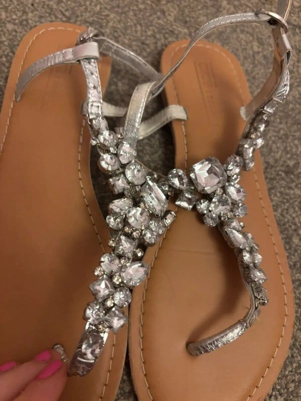 The ASOS Silver Crystal Embellished Sandals Size 6 is ideal for beach, casual, party.