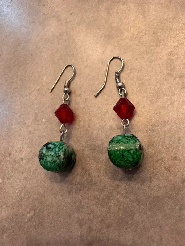 Make a bold, colourful statement with these ASOS gold dangle earrings, featuring a striking mix of a red gem drop and a green cube pendant. The contrasting shapes and colours give them a modern, artsy feel while still looking polished and high-end — the perfect pair for anyone who loves unique accessories.