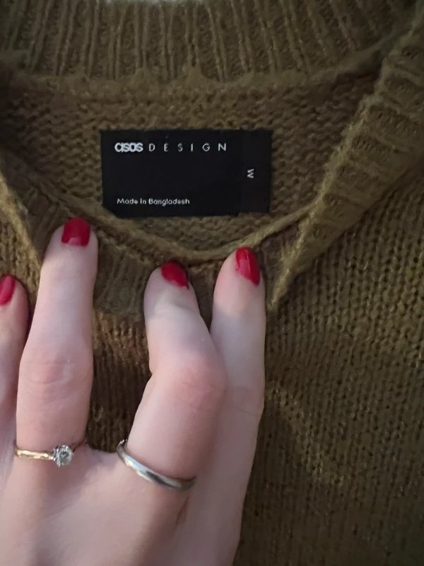 The ASOS Khaki Knit Sweater is available in sizes M.