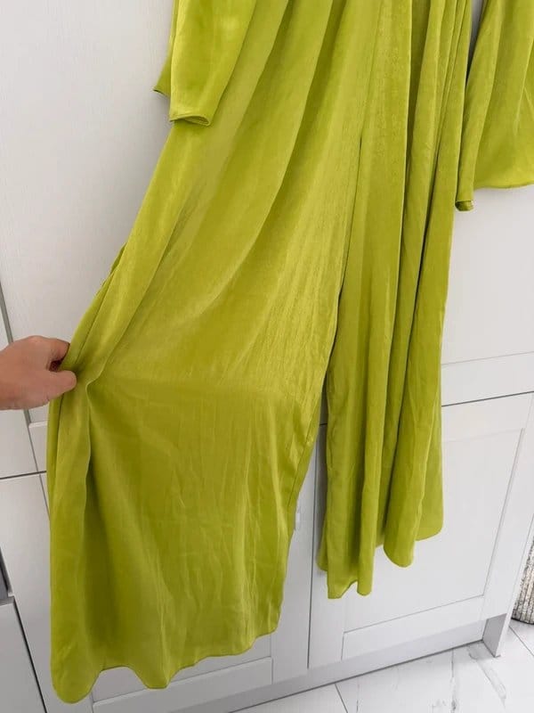 Back to ASOS Green Satin Off Shoulder Wide Leg Jumpsuit Size 10 →