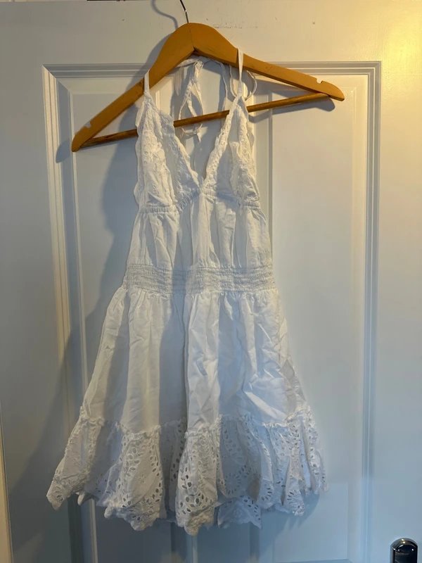 The ASOS Halter Neck Crochet Beach Cover Up in White is available in sizes S.