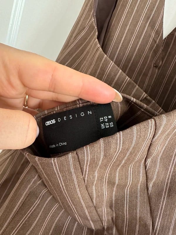 Stylish brown pinstripe halter neck top by ASOS. Features a crisp collar and adjustable halter neck straps for a flattering fit. Perfect for casual outings or smart-casual ensembles.