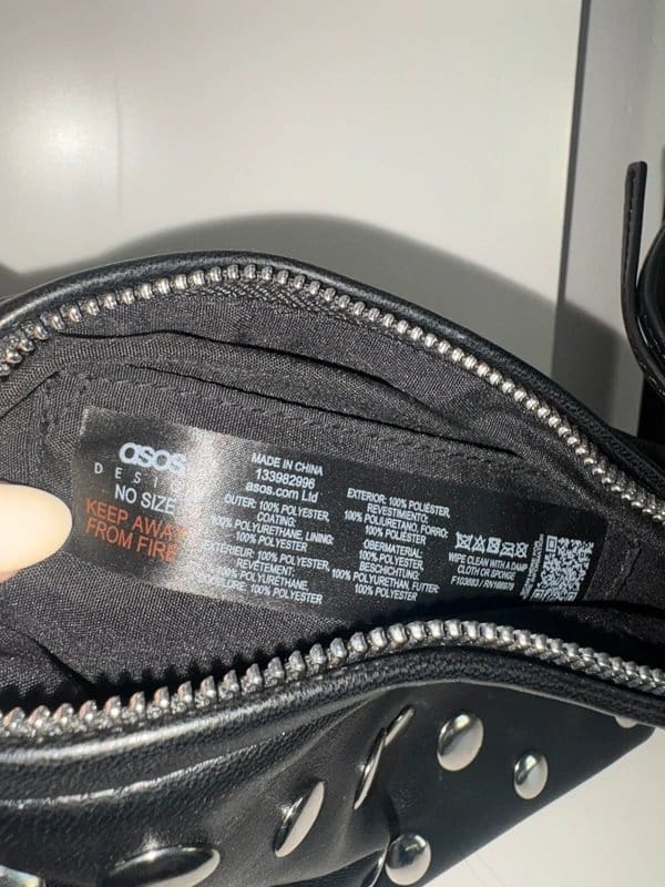The ASOS Black and Silver Handbag is made from polyester.