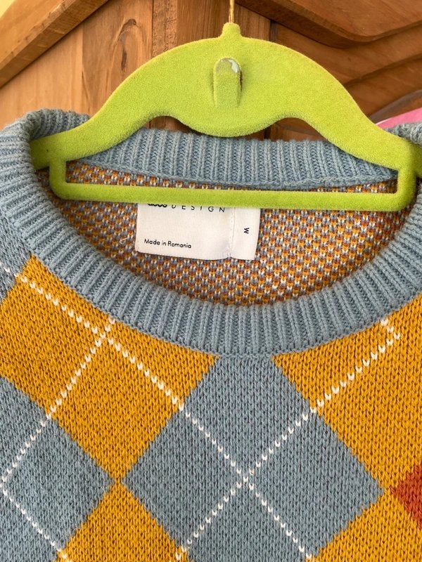 The ASOS Orange & Grey Heavy Knitted Jumper is available in sizes M.