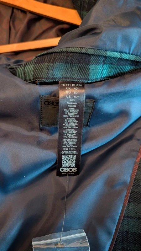 The ASOS Black & Green Check Blazer is available in sizes XL.