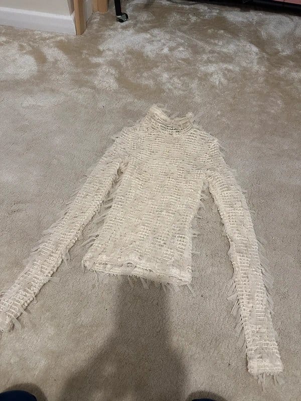 “Pair with dark wash skinny jeans and white ankle boots for a smart-casual look.”