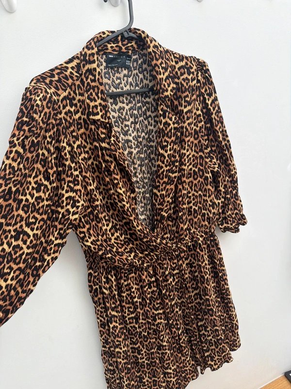 This leopard print jumpsuit from ASOS is perfect for spring or summer. The shorts and skirt-like design make it a versatile piece. Crafted from a lightweight fabric, it features a wrap-around waist and puff sleeves for a flattering fit. Ideal for casual outings or a night out.