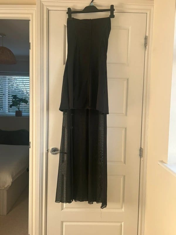 The ASOS Kaiia Bandeau Contrast Dress in Black is made from mesh.
