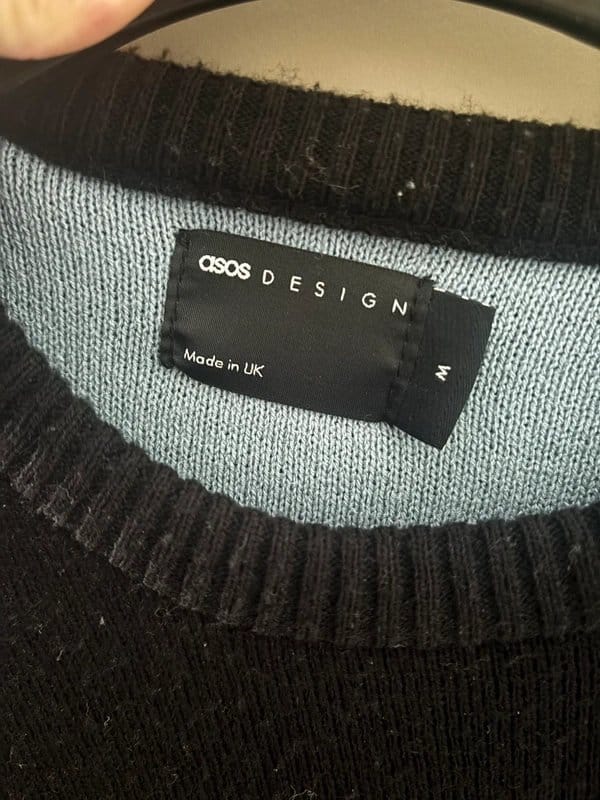 This ASOS jumper features a unique dinosaur print in black and grey. Made from a knitted fabric, it offers a comfortable and stylish fit. Ideal for casual wear or layering.