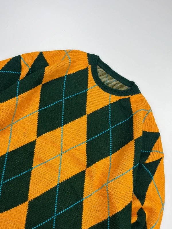 The ASOS Orange & Green Argyle Knit Jumper is available in sizes L.