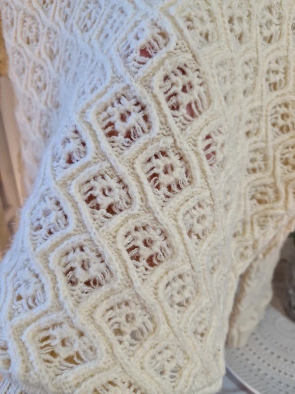 A cozy, oversized knitted jumper in cream. Perfect for a relaxed and comfortable look, this jumper adds a touch of softness to your wardrobe.