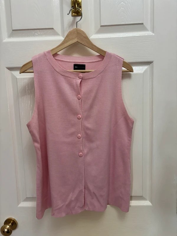 The ASOS Knitted Waistcoat in Pink is available in sizes S.