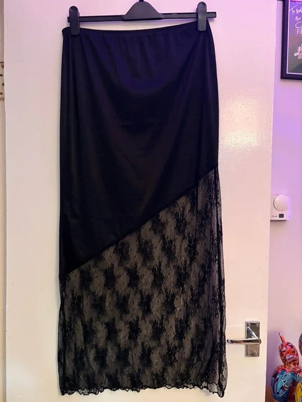 The ASOS Black Lace Slip Skirt is available in sizes M.