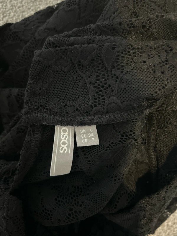 The ASOS Sheer Lace Crop Top in Black is available in sizes S.