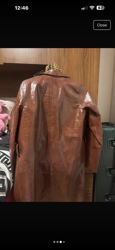 A chic, waterproof, oversized leather coat by ASOS. Perfect for any weather, this coat adds a touch of edginess to your wardrobe.