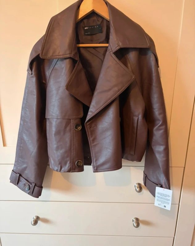 The ASOS Oversized Leather Jacket in Brown is available in sizes S.