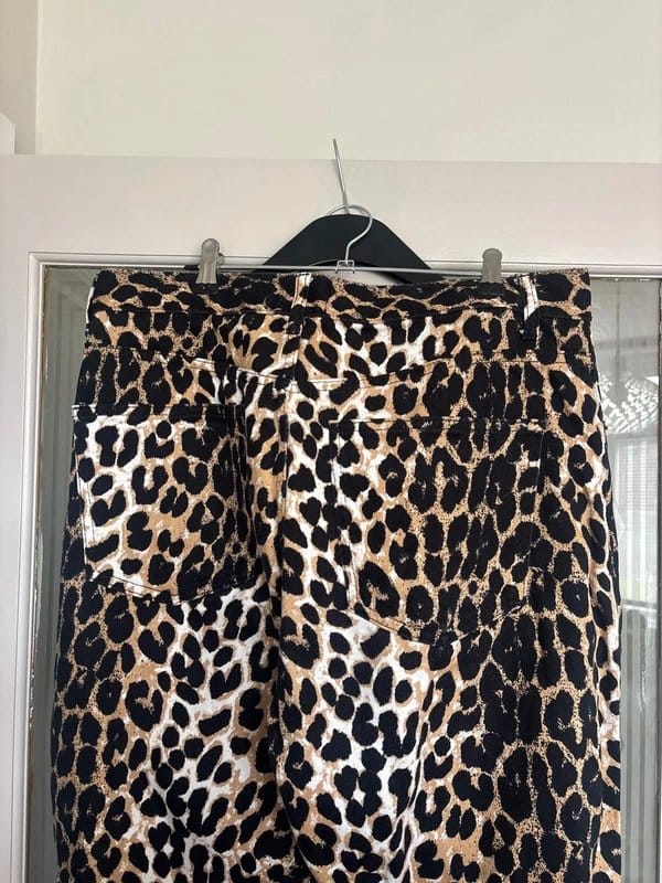 Bold leopard print denim shorts with a high-waisted fit and a relaxed silhouette. Perfect for a casual and trendy look.