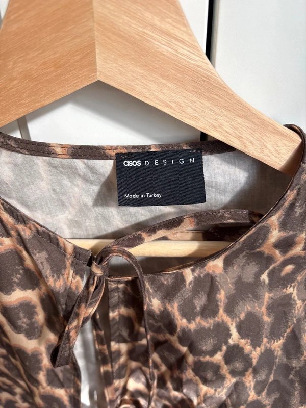 The ASOS Leopard Print Tie Front Top in Brown is available in sizes M.