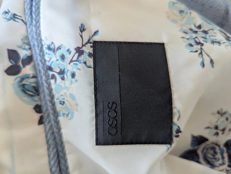 The ASOS Light Blue Patterned Blazer is available in sizes XXXL, XXL, XL, XS, L, M, S.