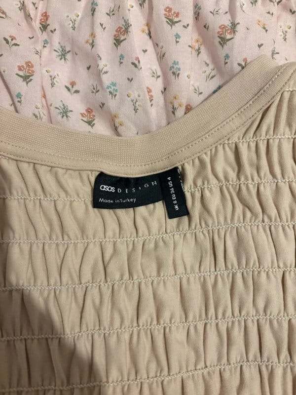 The ASOS Light Pink/Beige Ruched Top with Tie Sides is made from Ruche.