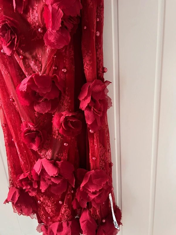 The ASOS Luxe Floral Embellished Lace Maxi Dress in Red is available in sizes S.