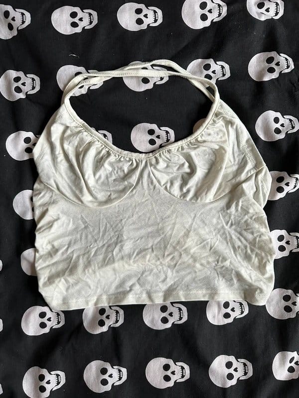 The ASOS Luxe 90s Halter Strappy Back Crop Top in White is available in sizes S.