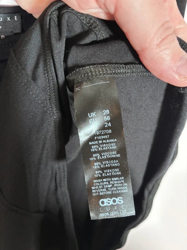 Stylish and comfortable ASOS Luxe black bodysuit in a classic minimalist design. Perfect for layering or wearing on its own for a sleek, chic look. Made from 90% viscose and 10% elastane, providing a soft, stretchy fit that flatters curves.