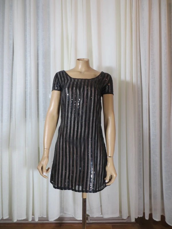 The ASOS Luxe Black Sequin Striped Silk Dress is ideal for party, evening, formal.