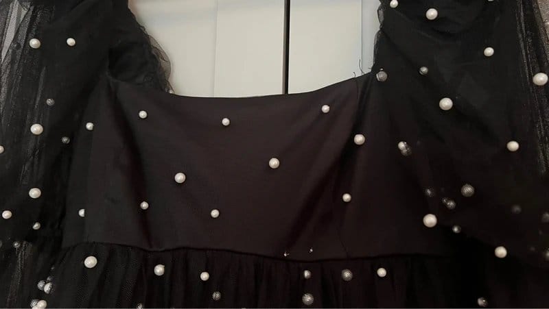 The ASOS Luxe Black Tulle Pearl Dress – Size 10 is made from tulle, polyester.