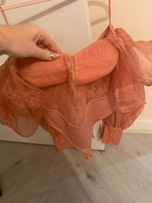 The ASOS Coral Lace Bodysuit is available in sizes L.