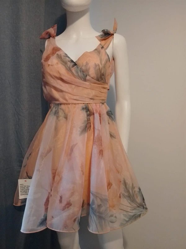 New with tags. Never worn. Features floral print and bow detailing for a touch of elegance.