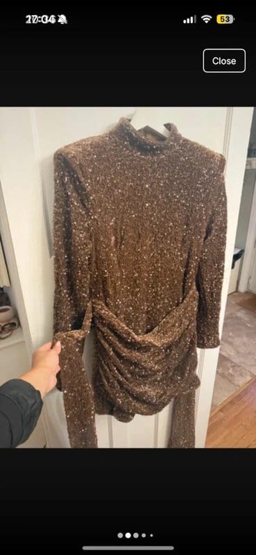 View Vinted's returns policyThe ASOS Brown Sequin Mini Dress is made from polyester, spandex.