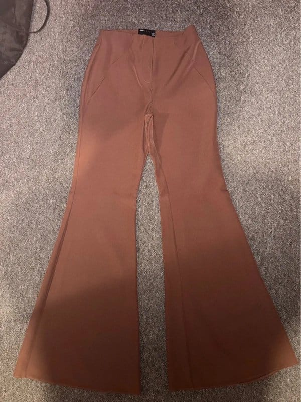The ASOS Brown Satin Flare Trousers is available in sizes S.