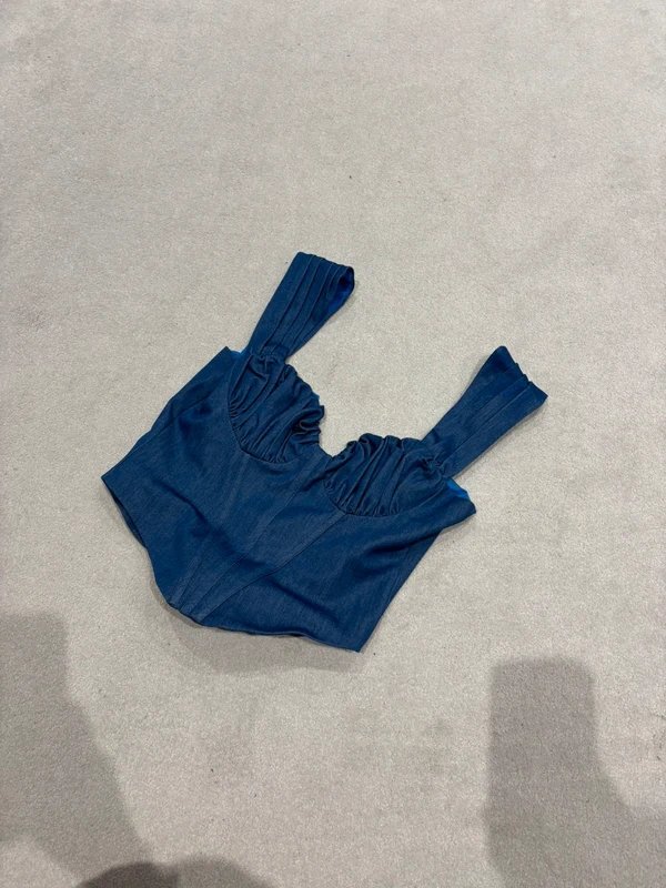 Navy Denim Corset Top by ASOS Luxe — a versatile piece for casual and semi-formal occasions. Designed in navy blue, this corset top features a denim fabric with a corset-style design and adjustable straps. Perfect for pairing with jeans or skirts for a casual look.