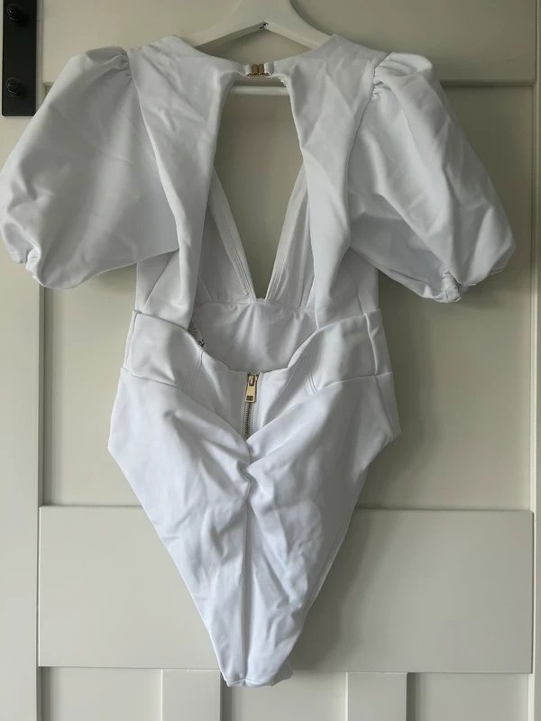 The ASOS Luxe White Corsetted Puff Sleeve Scuba Swimsuit is ideal for beach, party, evening.