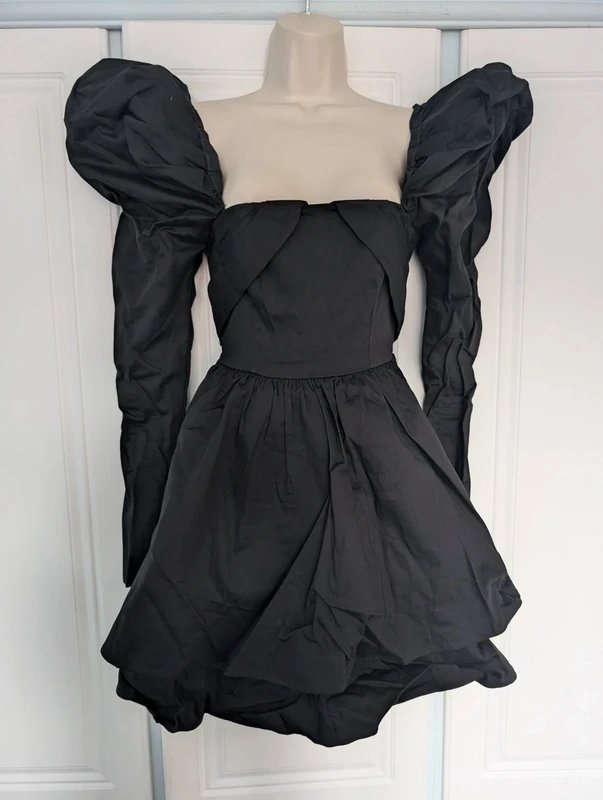 The ASOS Luxe Cotton Sateen Skater Mini Dress in Black is available in sizes S.