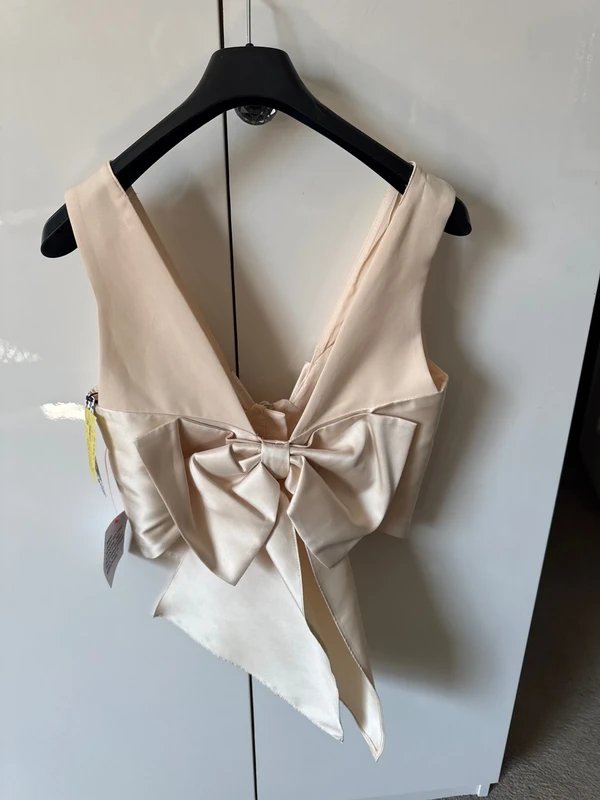 The ASOS Luxe Cream Crop Waistcoat with Large Bow is available in sizes S.