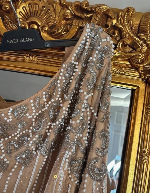 Pair with gold drop earrings and a clutch bag for a glamorous evening look