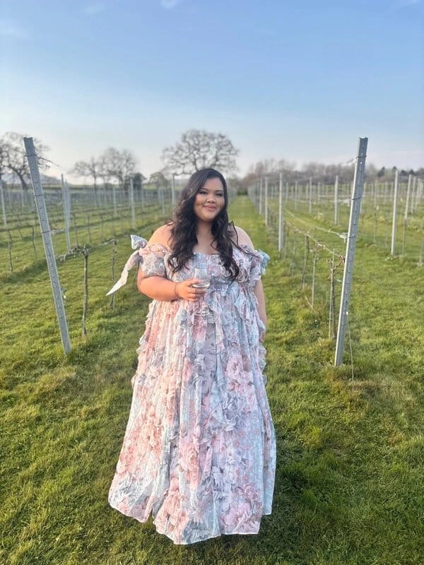 The ASOS Luxe Curve Maxi Dress in Lace Floral Print is available in sizes XXXL.