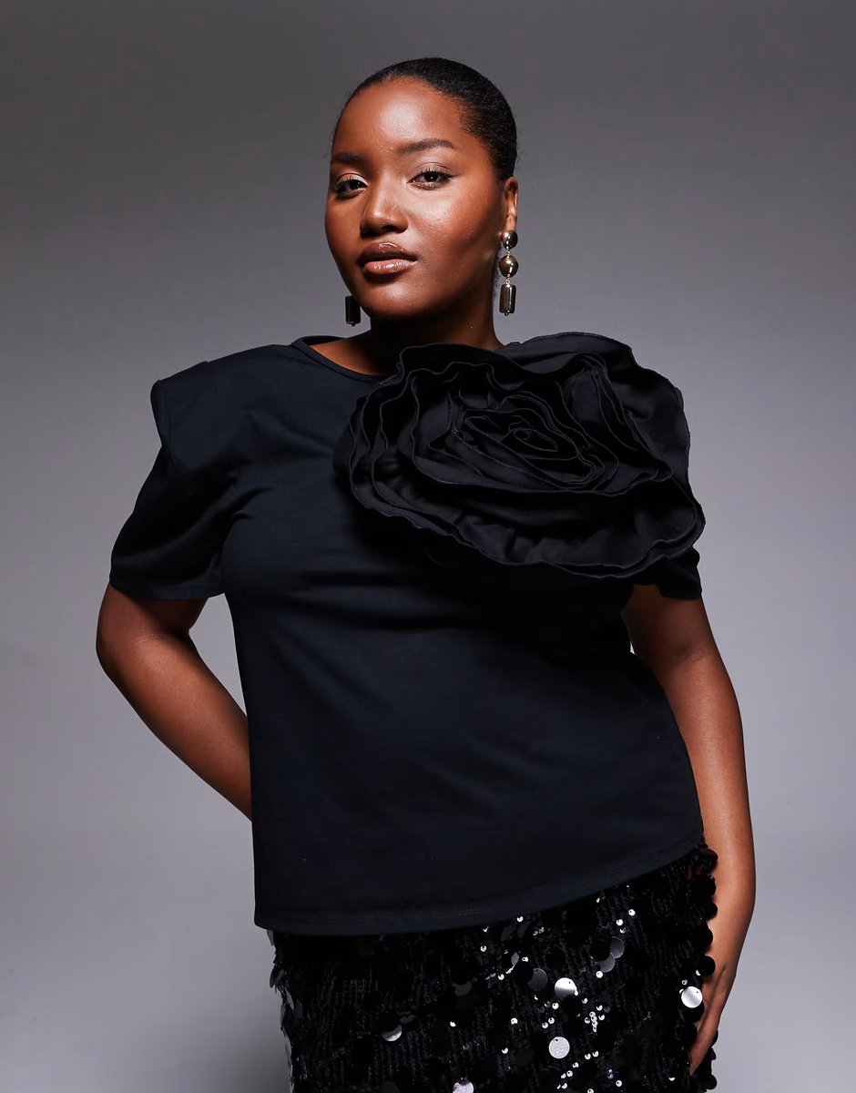 The ASOS Luxe Curve Premium Corsage T-Shirt in Black is ideal for evening, party.