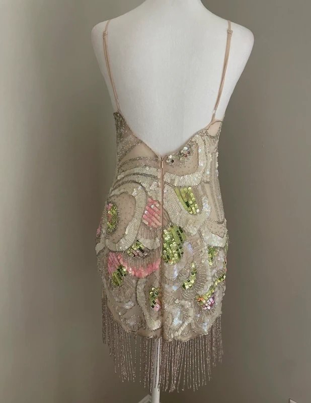 A stunning piece by ASOS, this sequin dress boasts a luxurious design with intricate fringes and a sheer panel. Perfect for adding sparkle to your evening wardrobe.