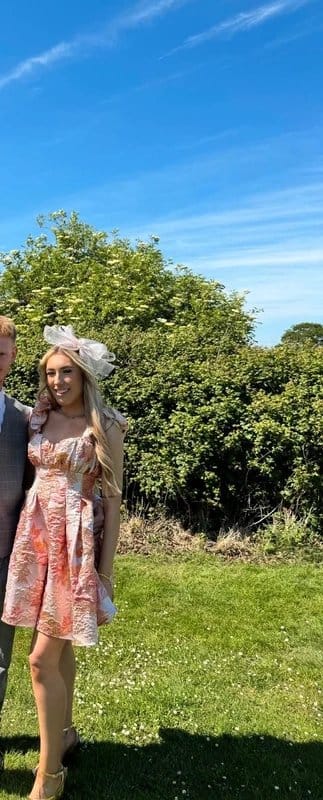 “Pair with gold strappy heels and a matching clutch for a cohesive look at races or weddings.”