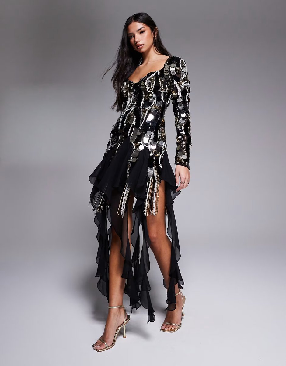 The ASOS Luxe Embellished Chiffon Mini Dress in Black is ideal for party, evening, date-night.