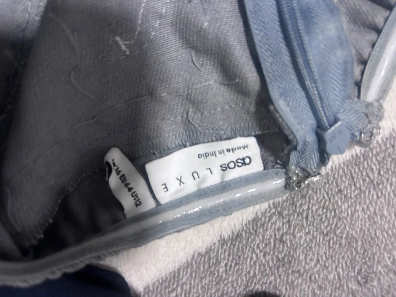 The ASOS Luxe Embellished Twill Bandeau Mini Dress is available in sizes L.