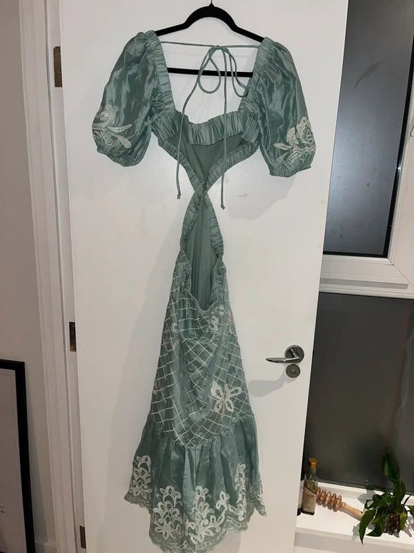The ASOS Luxe Embroidered Maxi Dress features a backless design with cutout detail, making it perfect for special occasions. This maxi dress boasts elegant embroidery and is available in stunning mint and white hues.